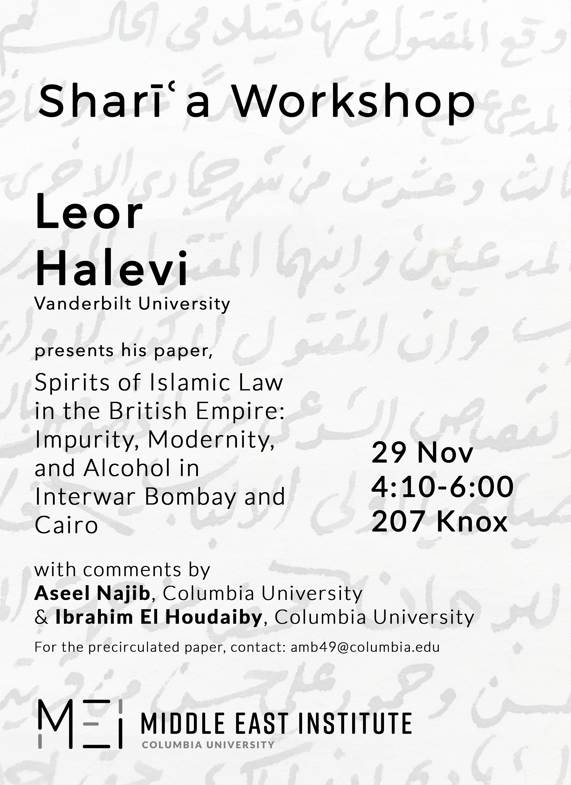 Shari’a Workshop is invitation only. To register for this event, please contact Astrid Benedek at amb49@columbia.edu.